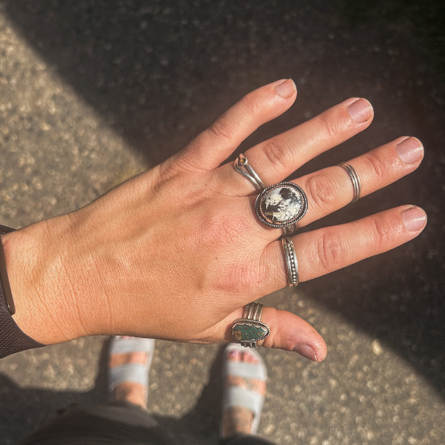 I create custom pieces using meaningful stones, heirloom materials, and stories that matter.