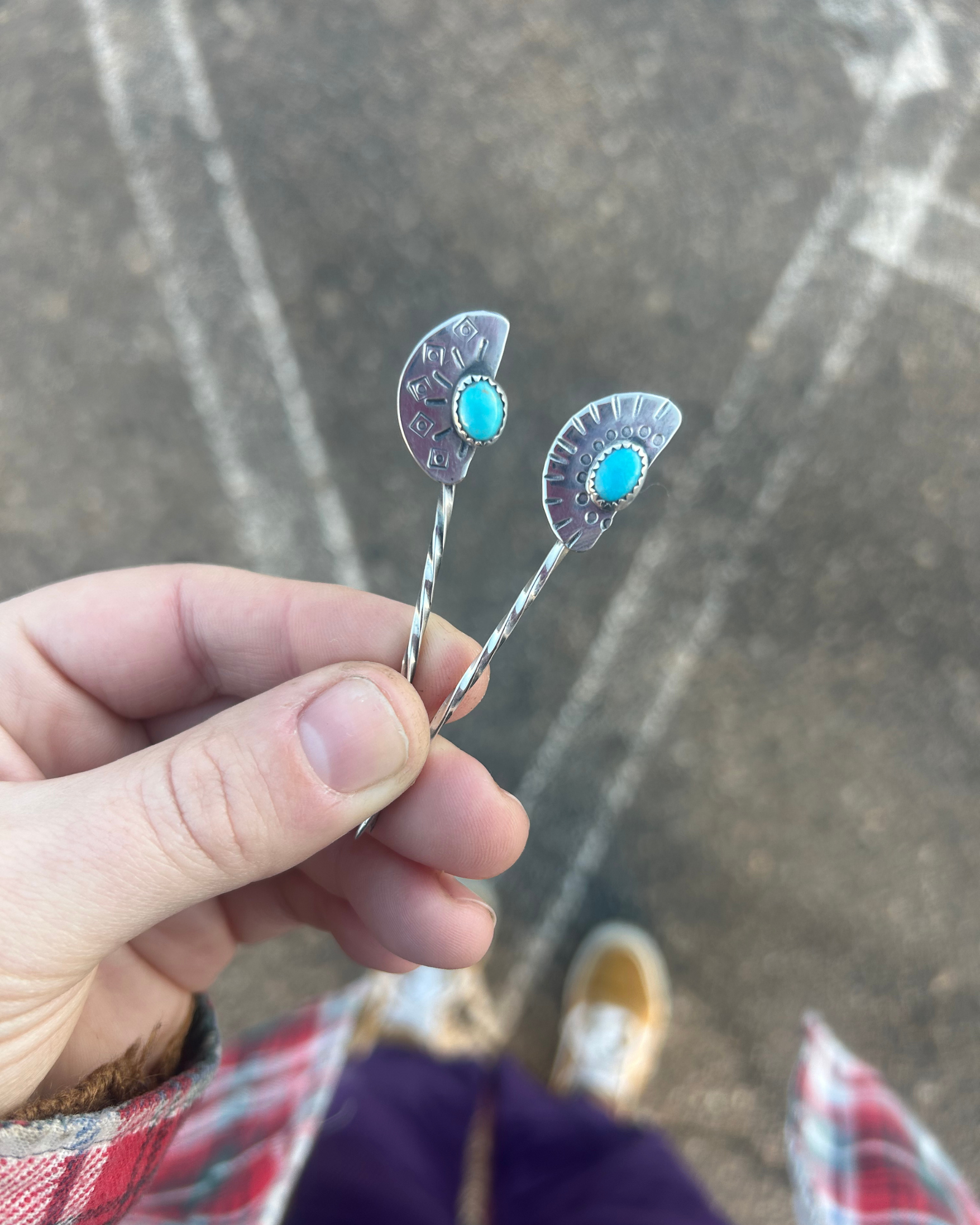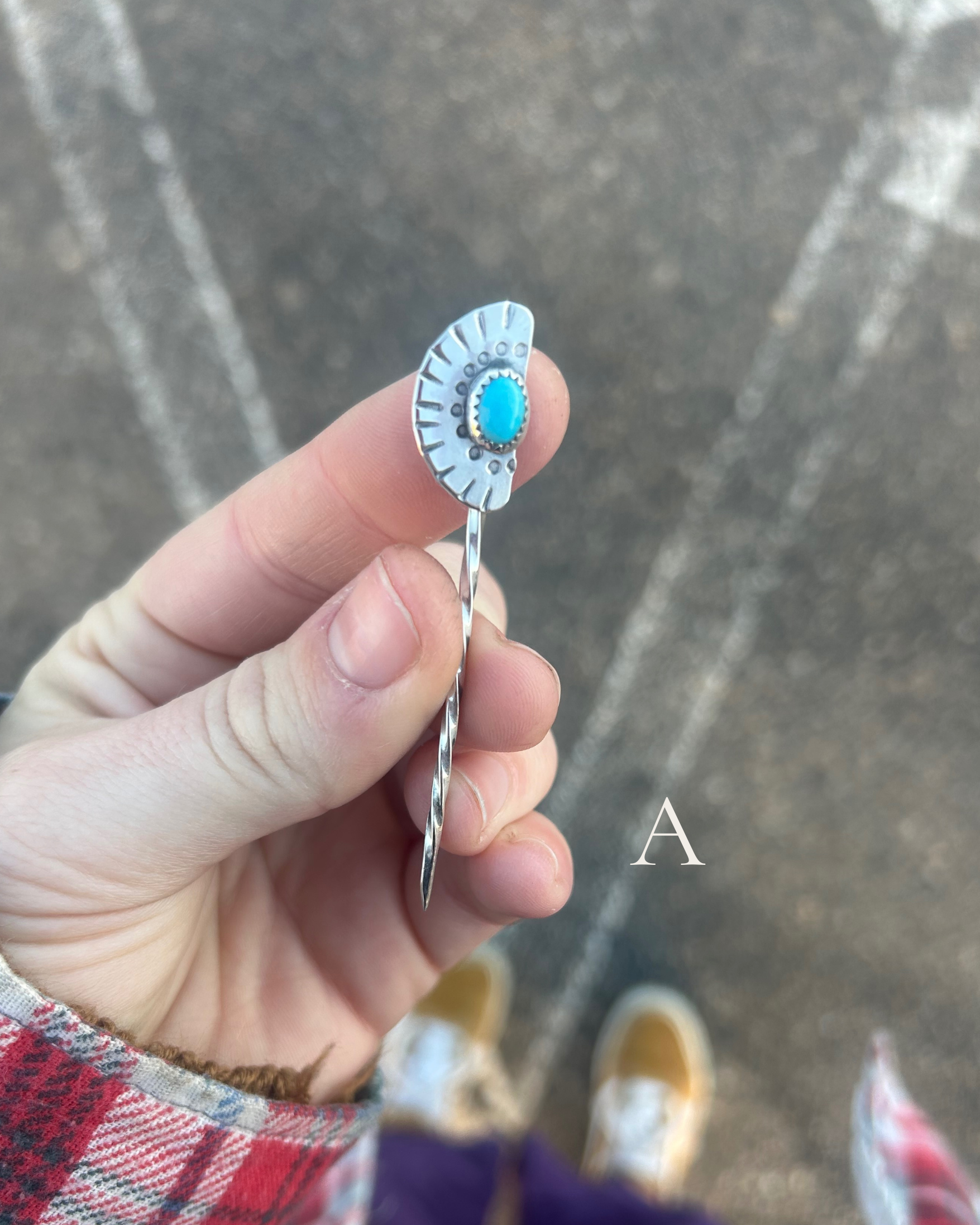 Each one is crafted to order in your choice of Design A or Design B, both featuring a genuine turquoise stone and a stamped, decorative sterling silver fan top. Though delicate in size, these toothpicks are strong enough for everyday carry and soft enough to be safe for enamel. They’re the little tool you didn’t know you needed until you have one.