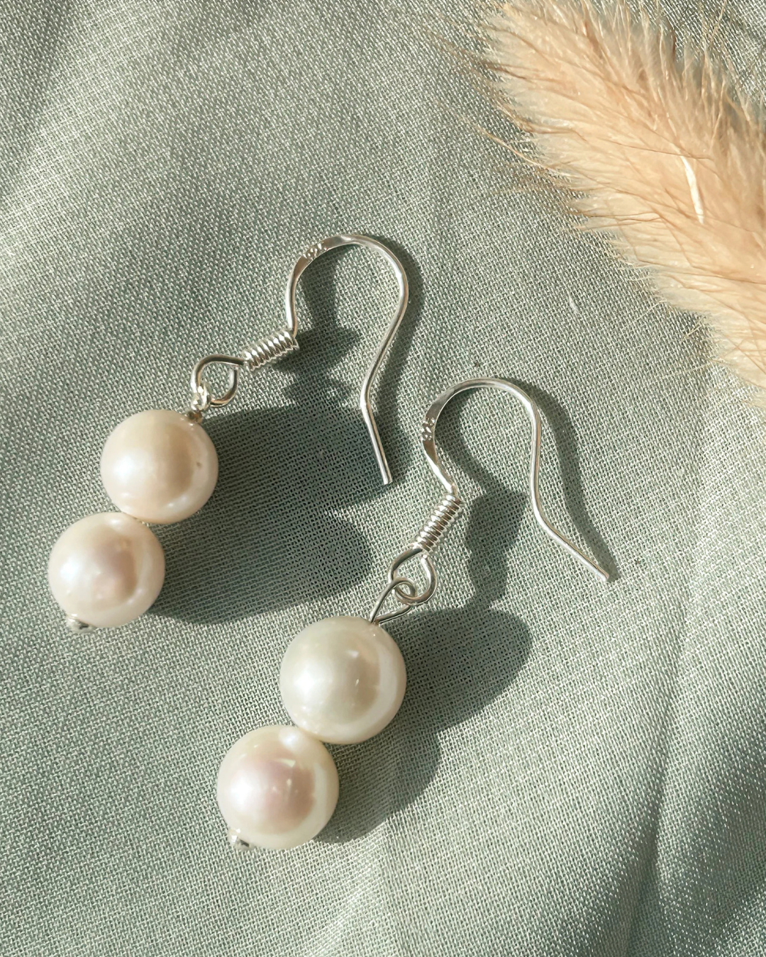 Two luminous freshwater pearls stacked in perfect balance — classic, feminine, and endlessly wearable. Each earring features two hand-selected, round pearls that catch the light beautifully, suspended from sterling silver ear hooks. A timeless piece designed to complement both everyday simplicity and special occasions.