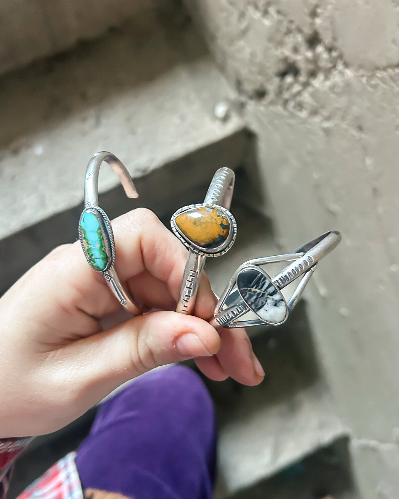 The band is fully hand-stamped and forged from solid sterling, shaped one hammer blow at a time. It’s weighty, durable, and made to last a lifetime.